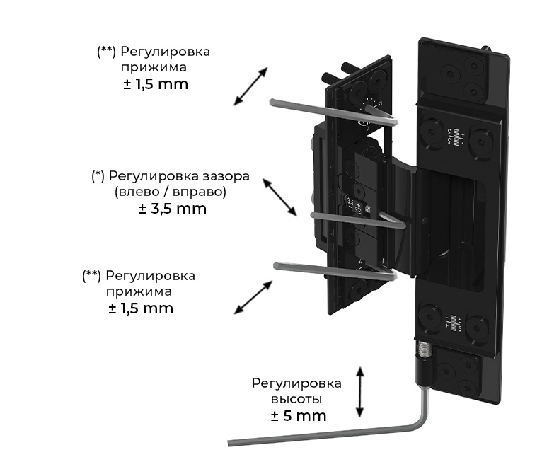 (*) - отрицательная регулировка может быть очень ограничена в зависимости от алюминиевой системы