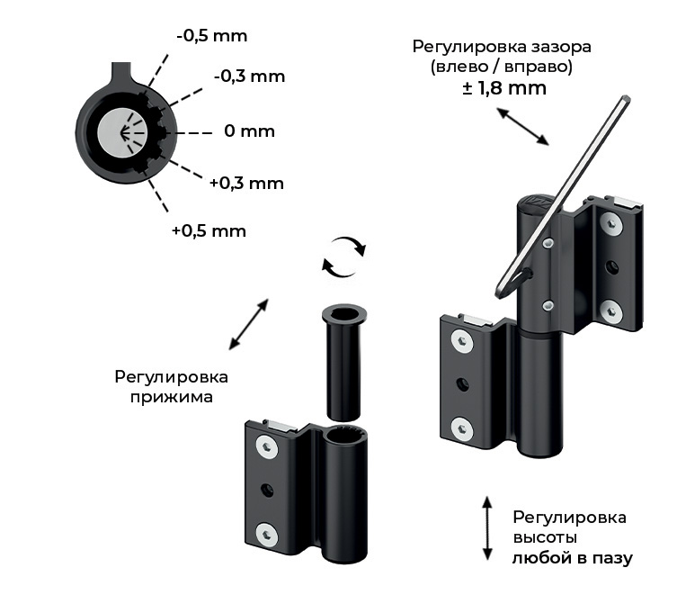 Петля RWE предназначена для алюминиевых систем с оконным европазом шириной 14 мм на дверной коробке и 15 мм на дверной сворке.