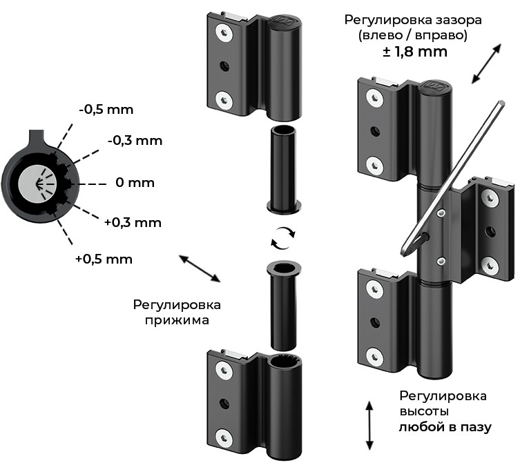 Петля RWE предназначена для алюминиевых систем с оконным европазом шириной 14 мм на дверной коробке и 15 мм на дверной сворке.