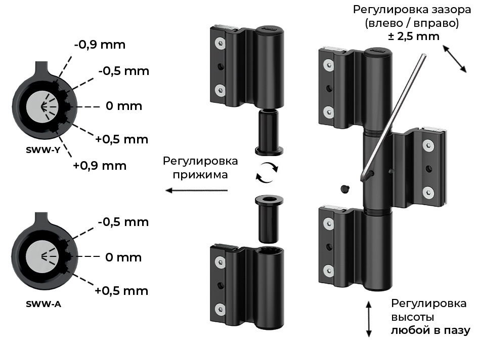 Петля SWW подходит для систем с пазами 22/19,5 к следующим системам: